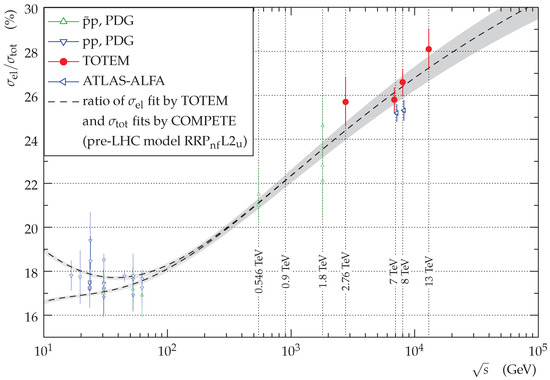 2.4. Energy Dependence of the Ratio of Elastic to Total Cross Section