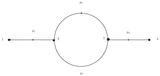 Similar is the problem we can see by considering theory. In this theory, the loop of Figure 2 is a vertex diagram, and the above Glaser–Epstein philosophy does not apply. Nevertheless, the propagator attached to the vertex depends on and “improves” the convergence of integration.