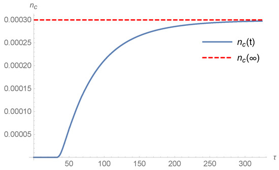 One advantage of the modified scheme is that it allows us to compute the number of particles in the condensate. Analysis shows that the flux into the zeroth cell becomes non-zero after finite time for overpopulated systems approaching the equilibrium Bose-Einstein distribution. Note that this flux remains well-defined as we take the limit . For large t, the flux becomes proportional to , which vanishes for an equilibrium distribution. The particle number in cell 0 has a “regular” contribution, which vanishes for , as well as the condensate contribution.