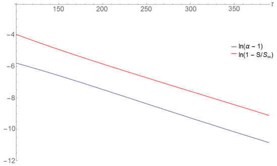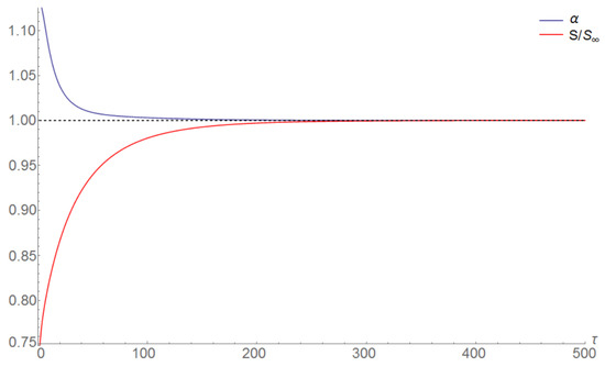 In Figure 7 we plot the evolution of the normalized entropy and anisotropy parameters associated with an initial condition of form (20), with parameters and . Figure 8 shows a log plot of this evolution.