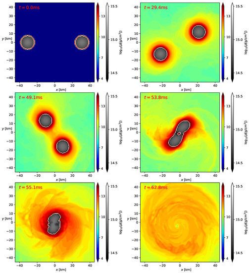 - Wilson, J.R.; Mathews, G.J. Instabilities in Close Neutron Star Binaries. Phys. Rev. Lett. 1995, 75, 4161–4164. [Google Scholar] [CrossRef] [PubMed]