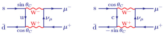 - Glashow, S.L.; Iliopoulos, J.; Maiani, L. Weak Interactions with Lepton-Hadron Symmetry. Phys. Rev. D 1970, 2, 1285–1292. [Google Scholar] [CrossRef]
