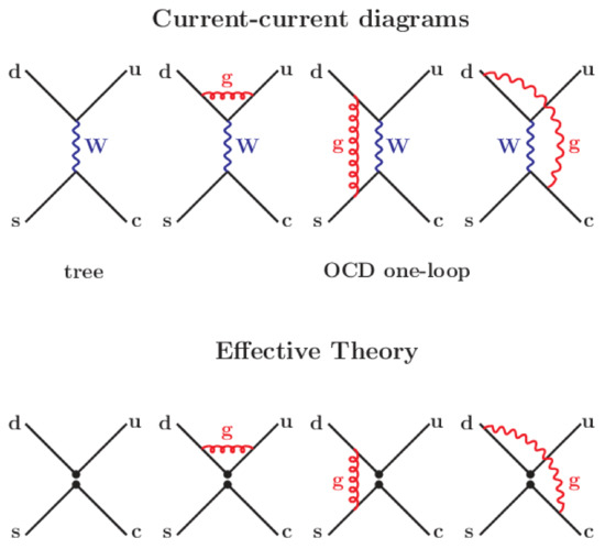 Then, one needs to take into account the one-loop QCD corrections both in full theory and in the theory with effective Hamiltonian. The corresponding tree and one-loop diagrams in full and effective theory are shown in Figure 3.