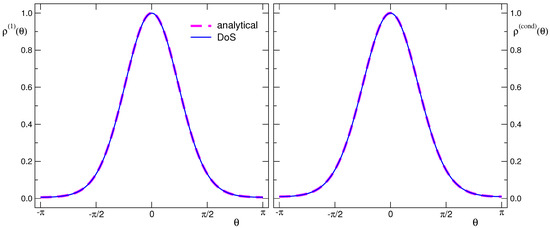 In Figure 1, we show the results for the densities (lhs plot) and (rhs). The thin blue curves are the results from the CanDos determination and the thick magenta curves the reference data computed with Fourier transformation as discussed in the previous subsection. Obviously, the CanDos densities matched the reference data very well.