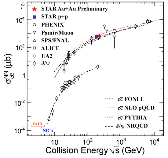 - Abelev, B.; Abrahantes, A.; Adamova, D.; Adare, A.; Aggarwal, M.; Aglieri, G.; Agocs, A.; Agostinelli, A.; Aguilar, S.; Ahammed, Z.; et al. Measurement of charm production at central rapidity in proton-proton collisions at = 7 TeV. JHEP 2012, 2012, 128. [Google Scholar] [CrossRef]