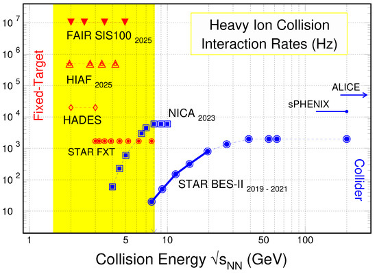 - Ablyazimov, T.; Abuhoza, A.; Adak, R.; Adamczyk, M.; Agarwal, K.; Aggarwal, M.; Ahammed, Z.; Ahmad, F.; Ahmad, N.; Ahmad, S.; et al. Challenges in QCD matter physics –The scientific programme of the Compressed Baryonic Matter experiment at FAIR. Eur. Phys. J. A 2017, 53, 60. [Google Scholar] [CrossRef]