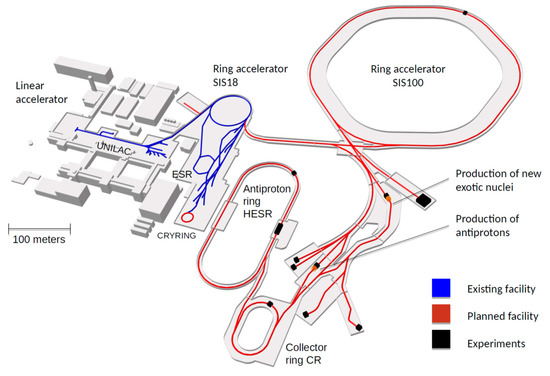 - Durante, M.; Indelicato, P.; Jonson, B.; Koch, V.; Langanke, K.; Meißner, U.-G.; Nappi, E.; Nilsson, T.; Stöhlker, T.; Widmann, E. All the Fun of the FAIR: Fundamental physics at the Facility for Antiproton and Ion Research. Phys. Scr. 2019, 94, 033001. [Google Scholar] [CrossRef]