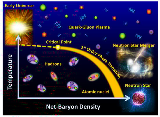 - Aoki, Y.; Endrődi, G.; Fodor, Z.; Katz, S.D.; Szabó, K.K. The order of the quantum chromodynamics transition predicted by the standard model of particle physics. Nature 2006, 443, 675. [Google Scholar] [CrossRef]
