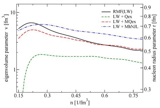 - Typel, S. Variations on the excluded-volume mechanism. Eur. Phys. J. A 2016, 52, 16. [Google Scholar] [CrossRef]