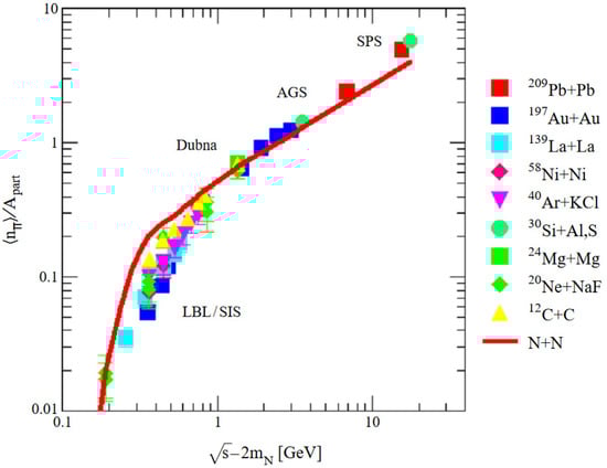 - Senger, P.; Ströbele, H. Hadronic Particle Production in Nucleus-Nucleus Collisions. J. Phys. G Nucl. Part. Phys. 1999, 25, R59. [Google Scholar] [CrossRef][Green Version]
