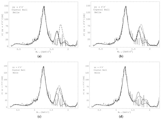 Next we consider the role of individual isoscalar-tensor mesonic resonances in saturation of the energy spectrum of the process . It is worth making, because interval 1.5–1.73 GeV, where our calculations diverge with the data [see Figure 1b], are in the region described mainly by the D-wave.
