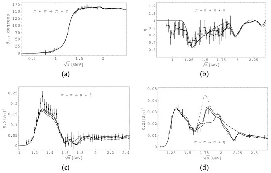- Surovtsev, Y.S.; Bydžovský, P.; Gutsche, T.; Lyubovitskij, V.E.; Kamiński, R.; Nagy, M. The scalar mesons in multi-channel ππ scattering and decays of the ψ and Υ families. In Proceedings of the Helmholtz International School Physics of Heavy Quarks and Hadrons (HQ2013), Dubna, Russia, 15–28 July 2013; Ali, A., Bystritskiy, Y., Ivanov, M., Eds.; DESY-PROC-2013-03. Verlag Deutsches Elektronen-Synchrotron: Hamburg, Germany, 2013; pp. 284–293, ISBN 978-3-935702-82-9, ISSN 1435-8077. [Google Scholar]