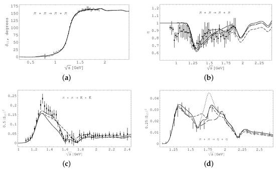 - Surovtsev, Y.S.; Bydzovsky, P.; Kaminski, R.; Lyubovitskij, V.E.; Nagy, M. Can parameters of f0 mesons be determined correctly analyzing only ππ scattering? Phys. Rev. D 2012, 86, 116002. [Google Scholar] [CrossRef]