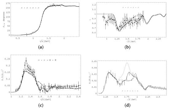 - Bydžovský, P.; Kamiński, R.; Nazari, V. Dispersive analysis of the S-, P-, D-, and F-wave ππ amplitudes. Phys. Rev. D 2016, 94, 116013. [Google Scholar] [CrossRef]