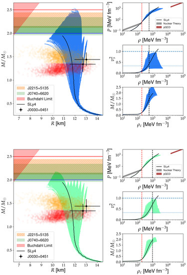 - Miller, M.C.; Chirenti, C.; Lamb, F.K. Constraining the Equation of State of High-density Cold Matter Using Nuclear and Astronomical Measurements. Astrophys. J. 2019, 888, 12. [Google Scholar] [CrossRef]