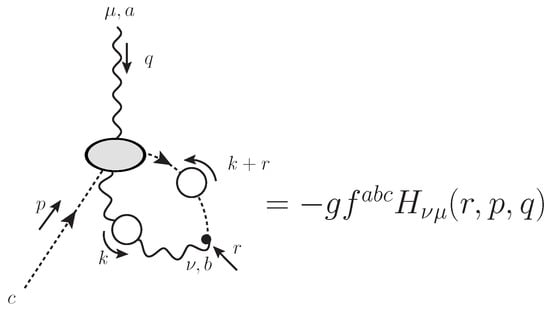 where is the Casimir eigenvalue of the adjoint representation [N for SU], is the ghost propagator, and denotes the ghost–gluon kernel defined in Figure 2.