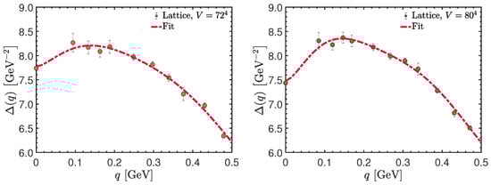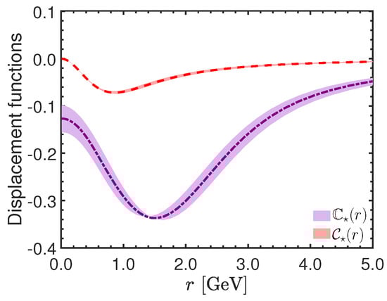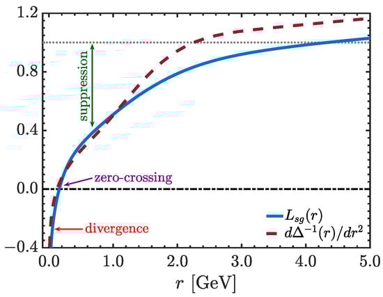 According to numerous lattice simulations and studies in the continuum (see e.g., [,,,,,,,,,,,,,,,,,,,,]), the ghost dressing function reaches a finite (nonvanishing) value at the origin, which, due to Equation (18), furnishes also the value of .