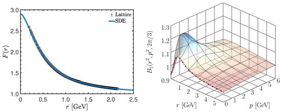 As has been shown in [], the dynamical equation governing yields , provided that the gluon propagator entering it is finite at the origin. Thus, one obtains from Equation (17) the useful identity []