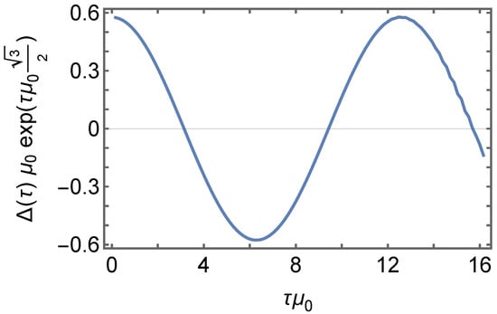 The mass function itself is a monotonically decreasing, concave-up function; yet, in this case, the Schwinger function has an inflection point at . Hence, it does not have a Källén–Lehmann representation; so, the associated excitation cannot appear in the Hilbert space of observables. Furthermore, evaluation of the configuration space Schwinger function defined by Equation (16) yields [81]