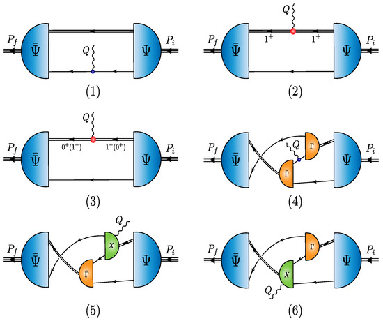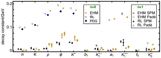 Following roughly forty years of two practically disjoint research efforts, one focused on QCD’s gauge sector [66,67,88] and another on its matter sector [21,23,24,25], a key step on the path to answering these questions was taken in Reference [68]. The two distinct efforts were designated therein as the top-down approach—ab initio computation of the interaction via direct analyses of gauge sector gap equations; and the bottom-up scheme—inferring the interaction by describing data within a well-defined truncation of those matter sector equations that are relevant to bound state properties. Reference [68] showed that the top-down and bottom-up approaches are unified when the RGI running interaction predicted by then-contemporary analyses of QCD’s gauge sector is used to explain ground state hadron observables using nonperturbatively improved truncations of the matter sector bound state equations. The first such truncation was introduced in Reference [89].