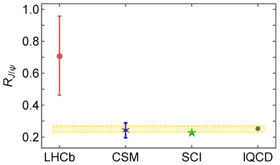 - Harrison, J.; Davies, C.T.H.; Lytle, A. Bc→J/ψ form factors for the full q2 range from lattice QCD. Phys. Rev. D 2020, 102, 094518. [Google Scholar] [CrossRef]