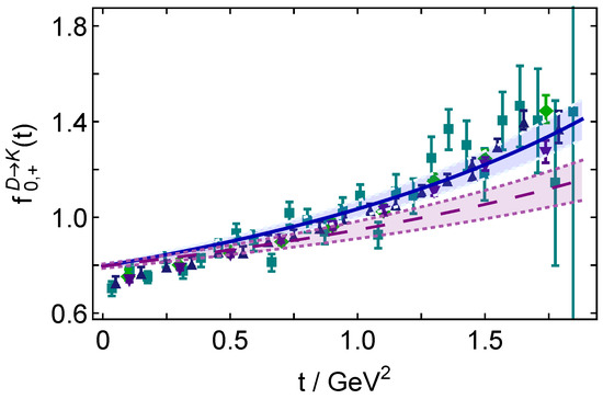 - Widhalm, L.; Abe, K.; Abe, K.; Adachi, I.; Aihara, H.; Arinstein, K.; Asano, Y.; Aushev, T.; Bakich, A.M.; Balagura, V.; et al. Measurement of D0→πlν(Klν) Form Factors and Absolute Branching Fractions. Phys. Rev. Lett. 2006, 97, 061804. [Google Scholar] [CrossRef] [PubMed]