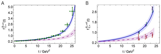 - Ivanov, M.A.; Körner, J.G.; Kovalenko, S.G.; Roberts, C.D. B- to light-meson transition form factors. Phys. Rev. D 2007, 76, 034018. [Google Scholar] [CrossRef]