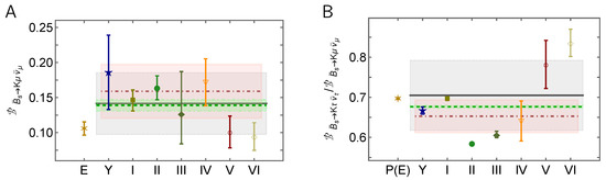 - Lees, J.P.; Poireau, V.; Tisserand, V.; Garra Tico, J.; Grauges, E.; Palano, A.; Eigen, G.; Stugu, B.; Brown, D.N.; Kerth, L.T.; et al. Branching fraction and form-factor shape measurements of exclusive charmless semileptonic B decays, and determination of |Vub|. Phys. Rev. D 2012, 86, 092004. [Google Scholar] [CrossRef]