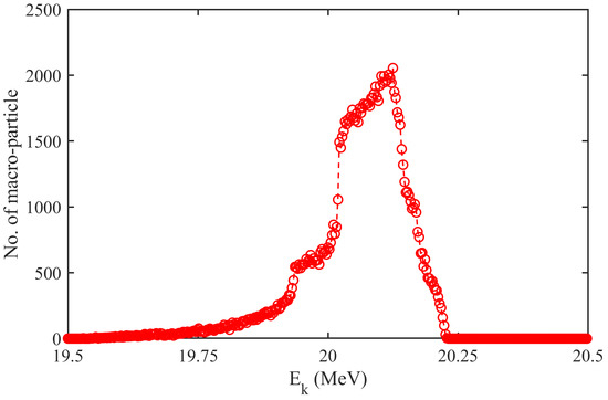 The complete energy spectrum of an example beam with a bunch charge of 117.5 pC and a kinetic energy of 20.06 MeV.