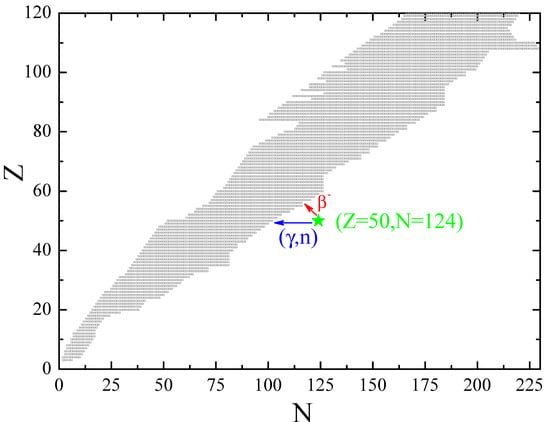 In recent years, beta decay models have been intensively developed, which has led to the emergence of new global calculations of these important characteristics [,], expanding the possibility, on the one hand, to study the stability of the results of modeling the nucleosynthesis process to nuclear data and, on the other hand, to try to evaluate, with the help of observations, the reliability of one or another nuclear-physical model for predicting the characteristics of exotic nuclei.