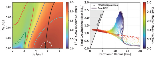 - Ellis, J.; Hütsi, G.; Kannike, K.; Marzola, L.; Raidal, M.; Vaskonen, V. Dark Matter Effects On Neutron Star Properties. Phys. Rev. D 2018, 97, 123007. [Google Scholar] [CrossRef]