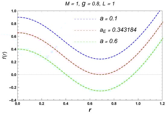Graphical representation of with respect to the radial coordinate with different values of a and fixed , , and .