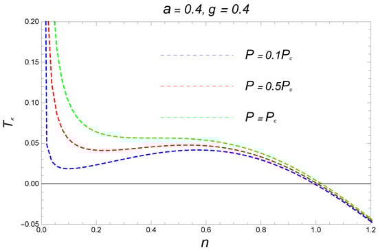 One can also analyze the phase transition via isothermal compressibility . By using Equations (41) and (48), we obtain