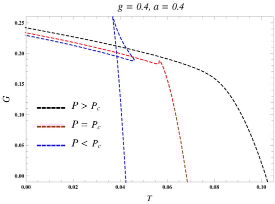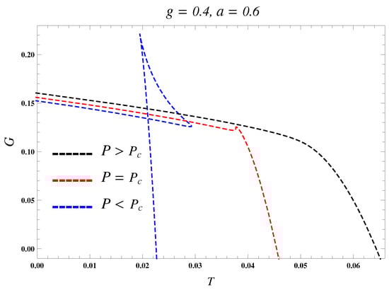Next, we want to check the global stability and order of the phase transition of the system by analyzing the Gibbs free energy [71,72,73,76,77,78,79], G, which is defined as