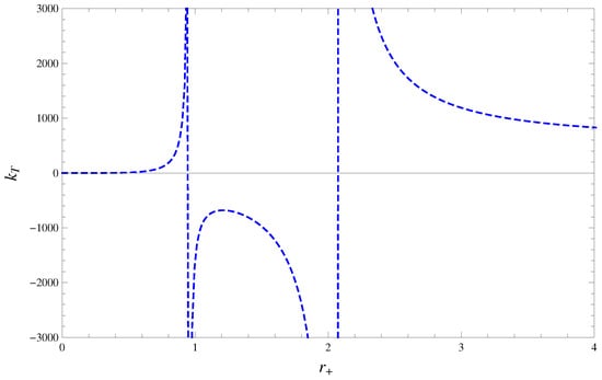 Figure 10 shows that small and large BHs with positive isothermal compressibility are thermodynamically stable, whereas, the intermediate BHs are unstable with .