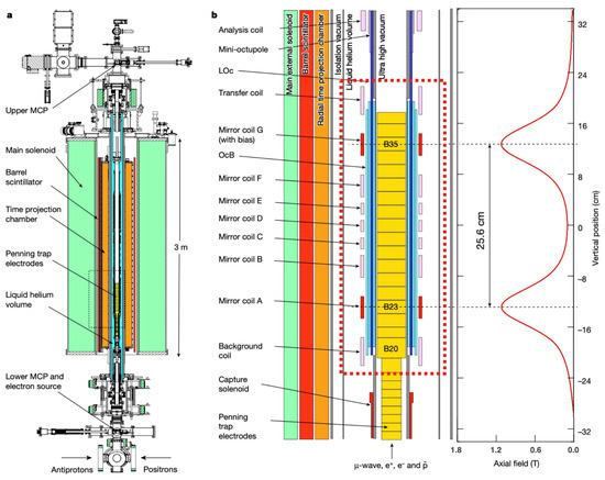 - Andresen, G.; Ashkezari, M.D.; Baquero-Ruiz, M.; Bertsche, W.; Bowe, P.D.; Butler, E.; Cesar, C.L.; Chapman, S.; Charlton, M.; Deller, A.; et al. Trapped antihydrogen. Nature 2010, 468, 673–676. [Google Scholar] [CrossRef] [PubMed]