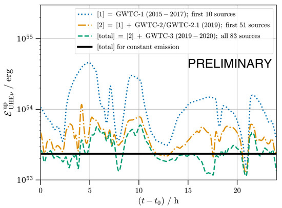- Schimp, M.; Abreu, P.; Aglietta, M.; Albury, J.M.; Allekotte, I.; Almela, A.; Alvarez-Muniz, J.; Batista, R.A.; Anastasi, G.A.; Anchordoqui, L.A.; et al. Combined Search for UHE Neutrinos from Binary Black Hole Mergers with the Pierre Auger Observatory. In Proceedings of the 37th International Cosmic Ray Conference—PoS(ICRC2021), Berlin, Germany, 12–23 July 2021; Volume 395, p. 968. [Google Scholar] [CrossRef]