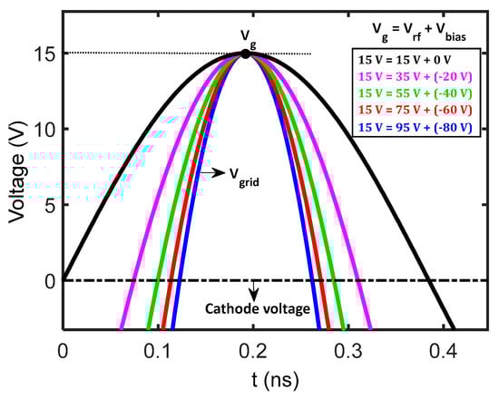 V g r i d = V b i a s + V r f cos 2 π f t θ