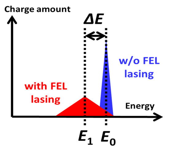 Schematic diagram of the electron beam energy distribution with and without FEL lasing.