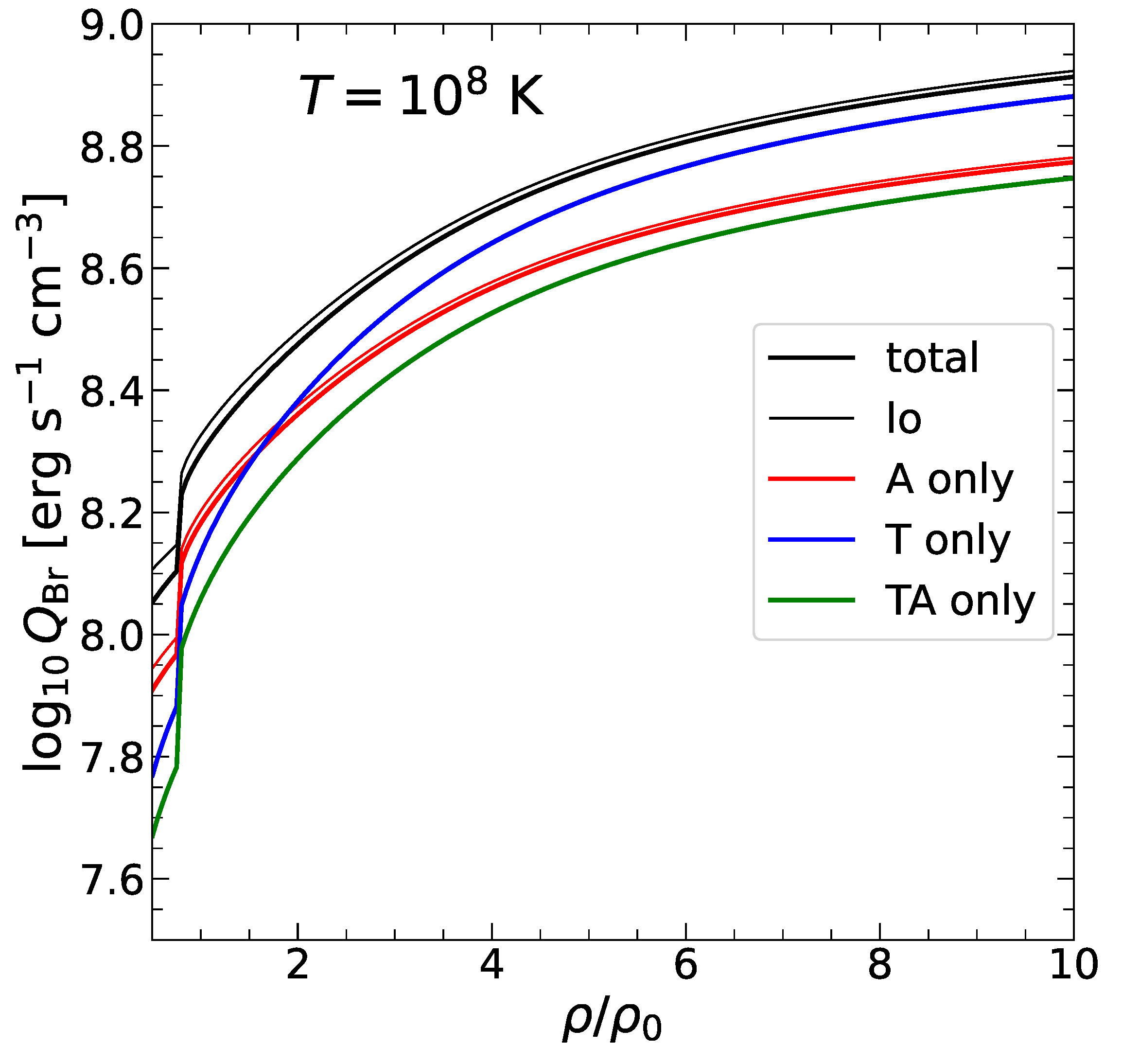 Within the Fermi’s Golden Rule approach, neutrino-pair emissivity in the bremsstrahlung process can be calculated as, e.g., [5,6]