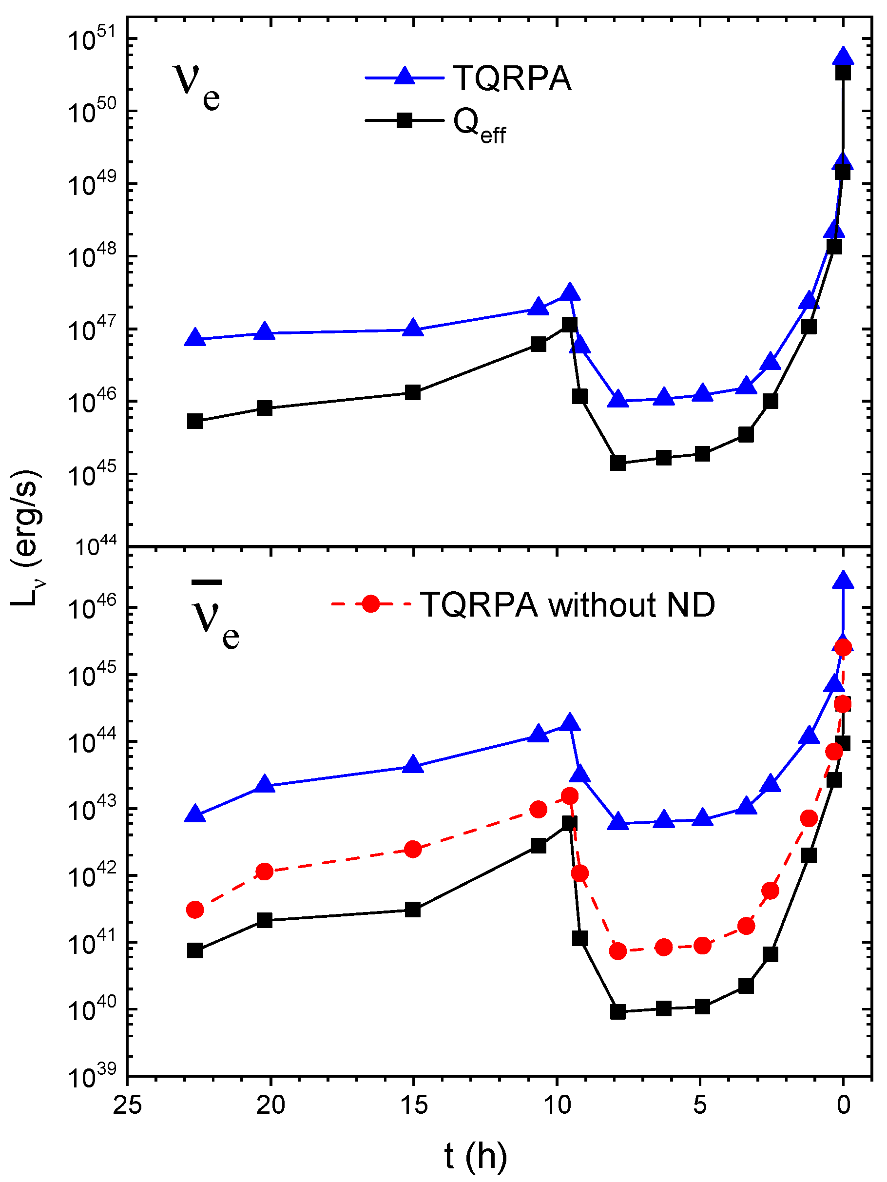 - Dzhioev, A.A.; Yudin, A.V.; Dunina-Barkovskaya, N.V.; Vdovin, A.I. Neutrinos from pre-supernova in the framework of TQRPA method. Mon. Not. R. Astron. Soc. 2024, 527, 7701–7712. [Google Scholar] [CrossRef]