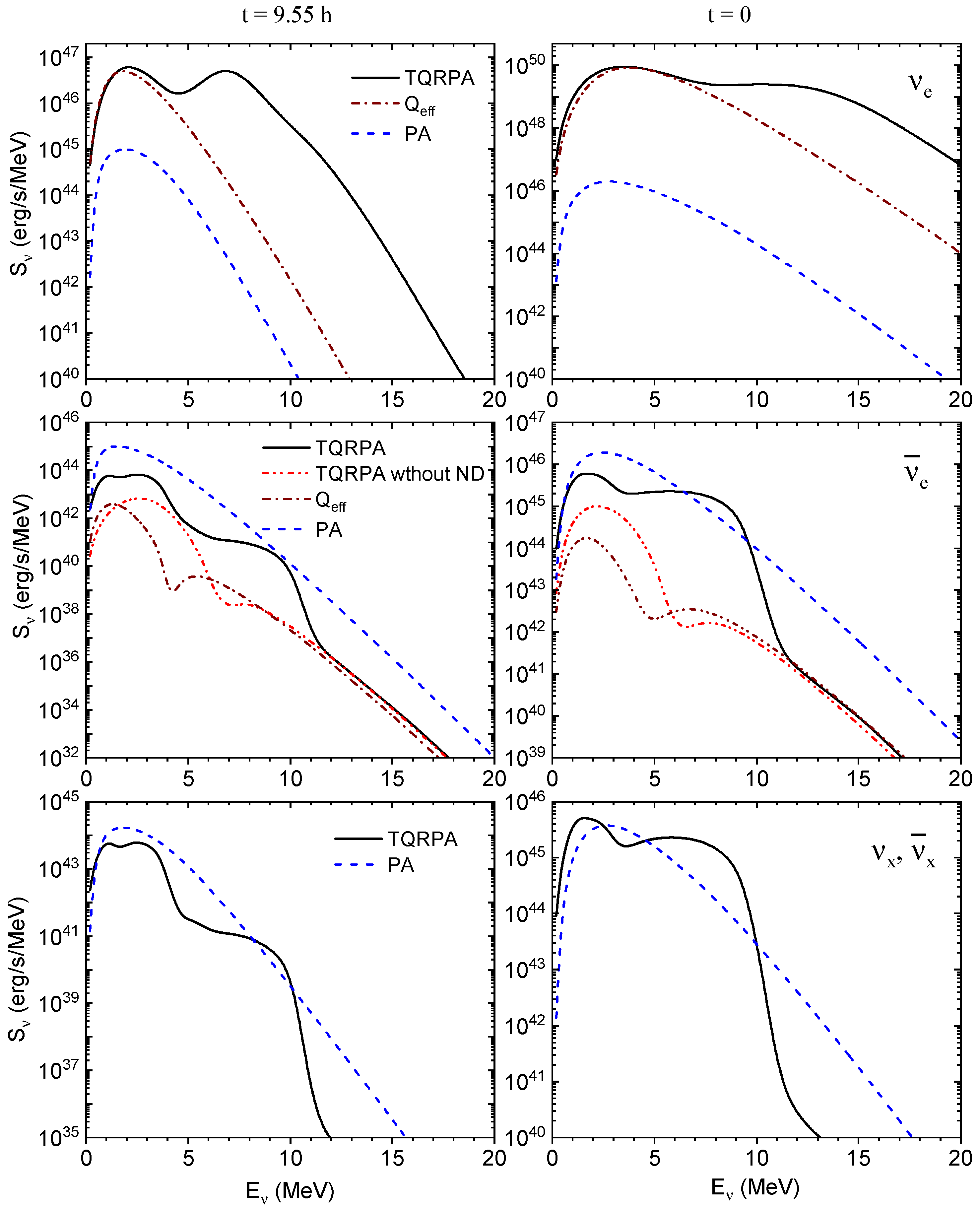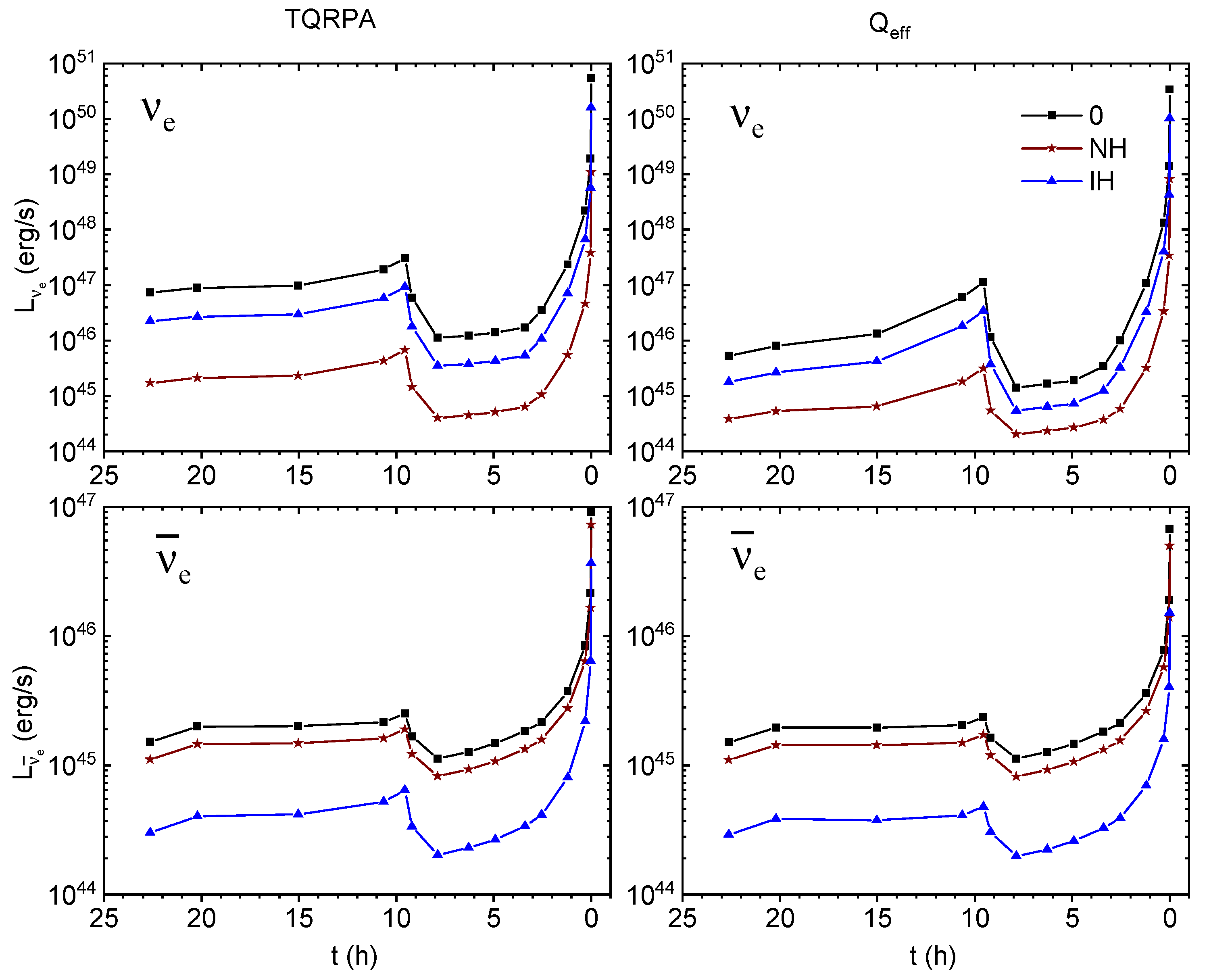 - Dzhioev, A.A.; Yudin, A.V.; Dunina-Barkovskaya, N.V.; Vdovin, A.I. Neutrinos from pre-supernova: Effects of nuclear temperature on luminosities and spectra. Int. J. Mod. Phys. E 2024, 33, 2441014. [Google Scholar] [CrossRef]