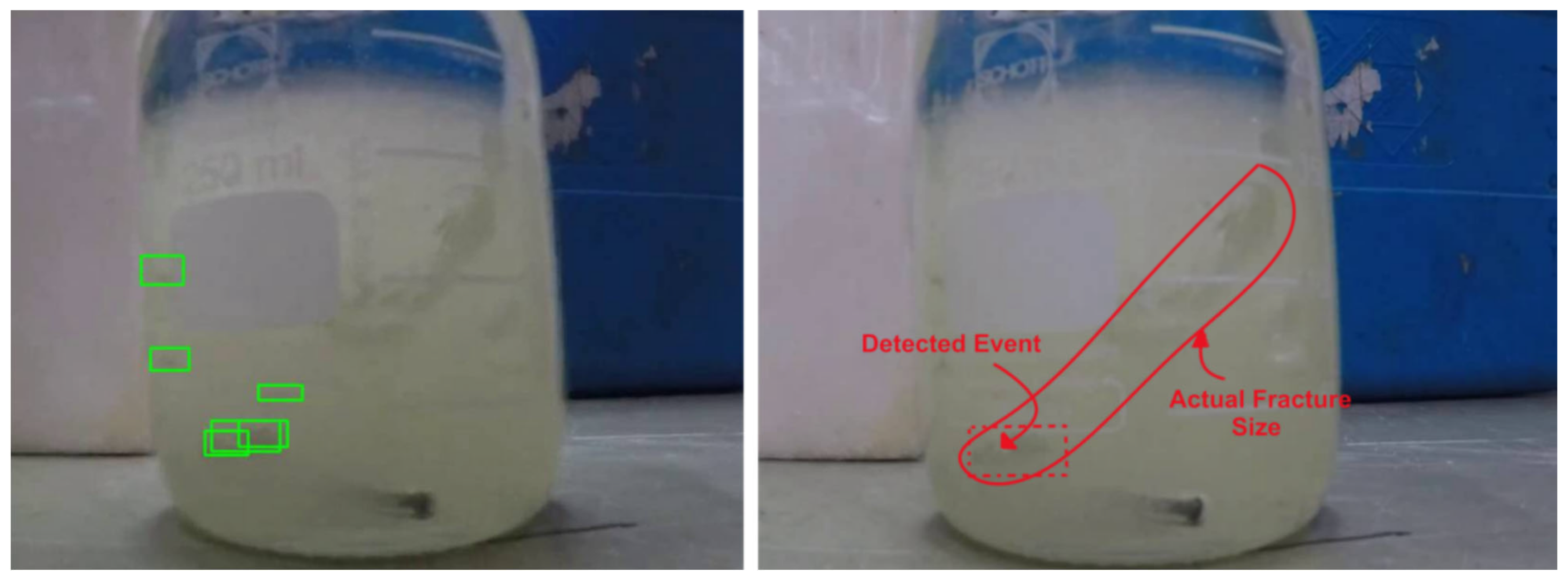 The optical system’s performance was constrained by the limited dataset size for training, non-uniform lighting, the partial opacity of the gel, and the camera resolution and frame rate. Despite these limitations, the ~80% precision demonstrates the feasibility of machine-learning-based bubble detection.