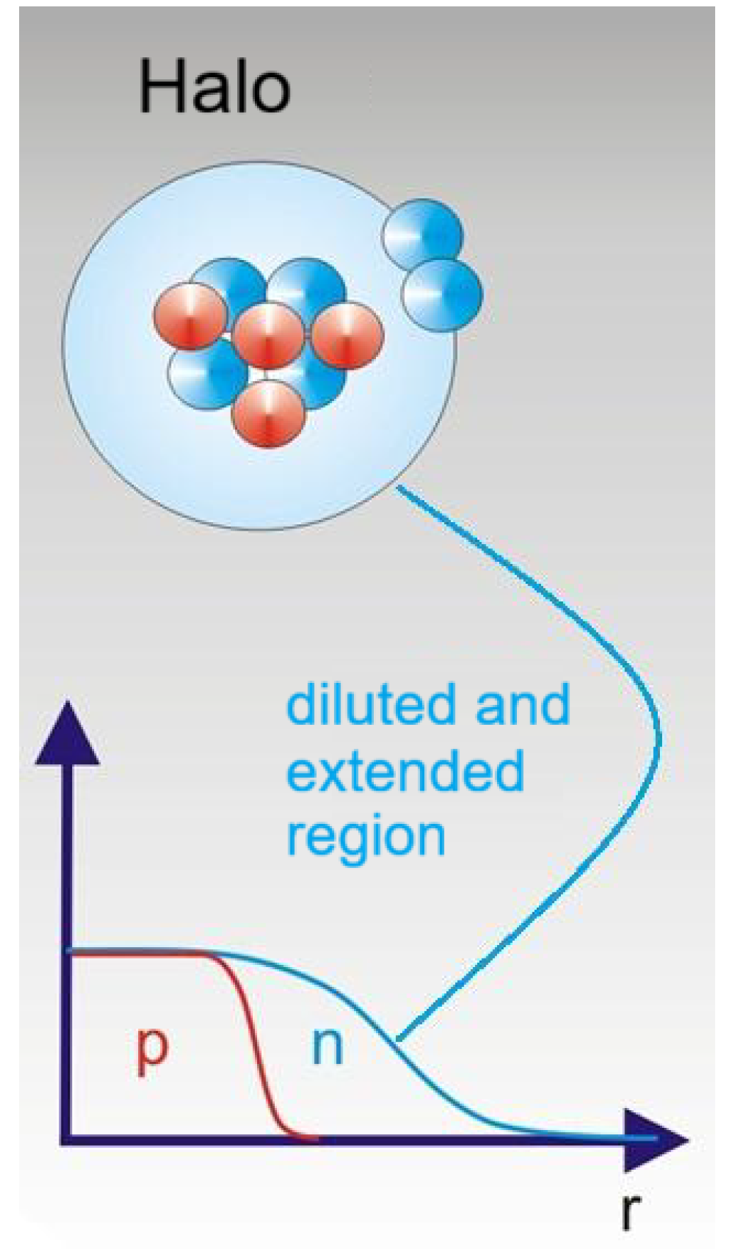 Figure 1). One- and two-neutron halos have been found in many isotopes of the nuclear chart, especially far from the stability line, where the imbalance of neutrons over protons makes it easier to populate low-