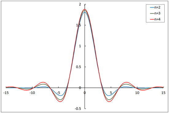 By its structure it is a Fourier transform of the function . If we look on how the function evolves with a change of w, as demonstrated in Figure 1, its properties are easy to grasp, namely this function is even and alternating. To compare , and theories are presented.