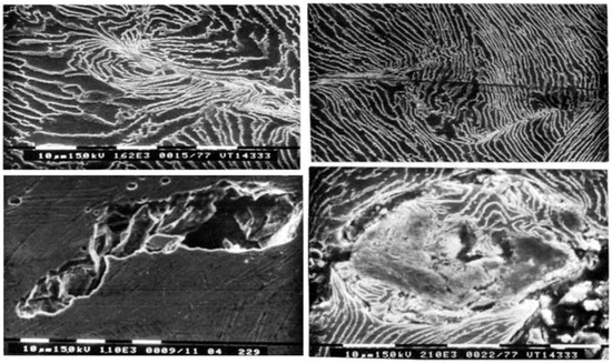 Some typical relict mesostructures are presented in Figure 9. A powder with a vortex internal structure was found in the spall zone of copper targets after shock loading.