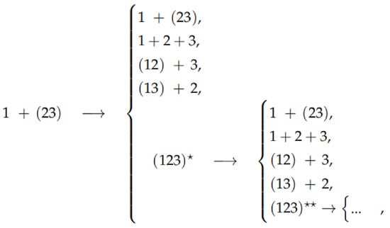 In the present work, we consider a more general formulation of the three-body problem, namely, multichannel scattering (see diagram in Figure 1) with arbitrary interactions potential between bodies, including taking into account three-particle interactions. In particular, the solution of the problem requires 18 (6 × 3) first integrals of motion. In general, as E. Bruns [38] showed (see also the book [39]), the n-body problem with , taking into account the binary interaction between particles, admits only 10 first integrals and is thus not integrable. It should be noted that although the three-body problem is non-integrable, in some special cases, it is possible to calculate analytical solutions, the so-called homographic solutions (see for example [40]). Nevertheless, it is worth noting a clear example from classical mechanics that demonstrates the chaotic behavior of a system even in the case of four coupled first-order ordinary differential equations derived from Hamilton’s equations of motion.