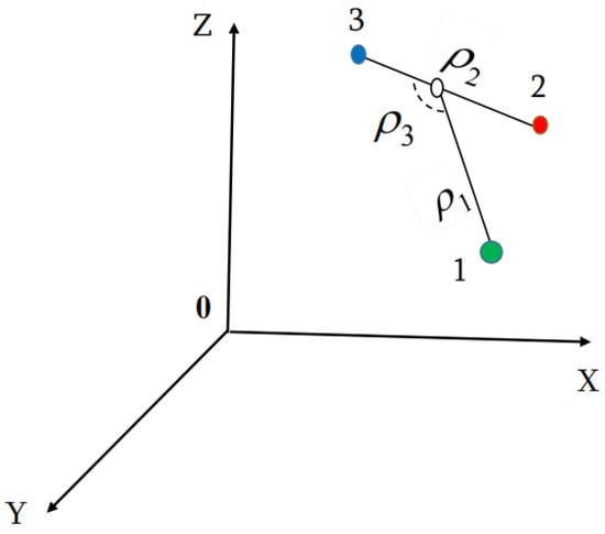 Thus, we have formulated all the necessary mathematical formulas for studying the general three-body problem (see diagram in Figure 1) by calculating the trajectory of the reduced mass of three bodies , where and , in three-dimensional configuration space .