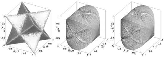 As we have seen, a system of underdetermined algebraic Equation (5) plays a key role in transformations between local and global coordinate systems. It is convenient to study this system by writing it in a dimensionless form, in which all the geometric and topological properties of the manifolds generated by it are preserved: