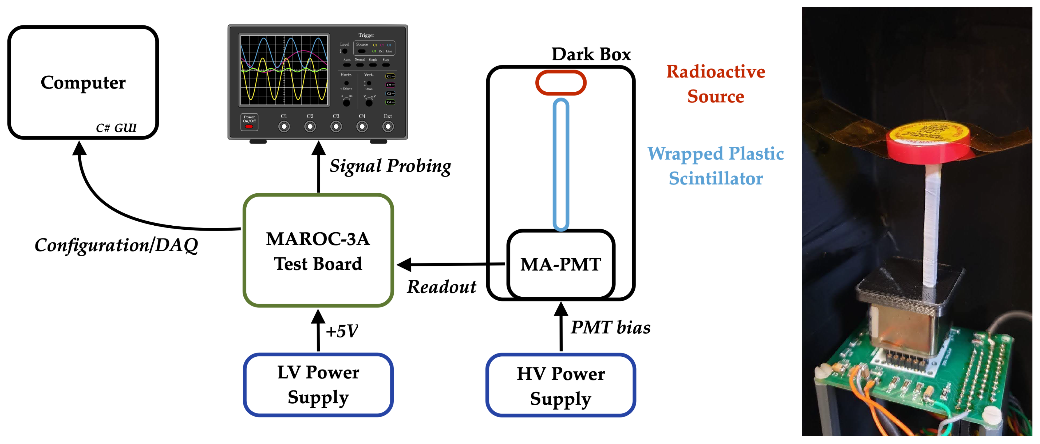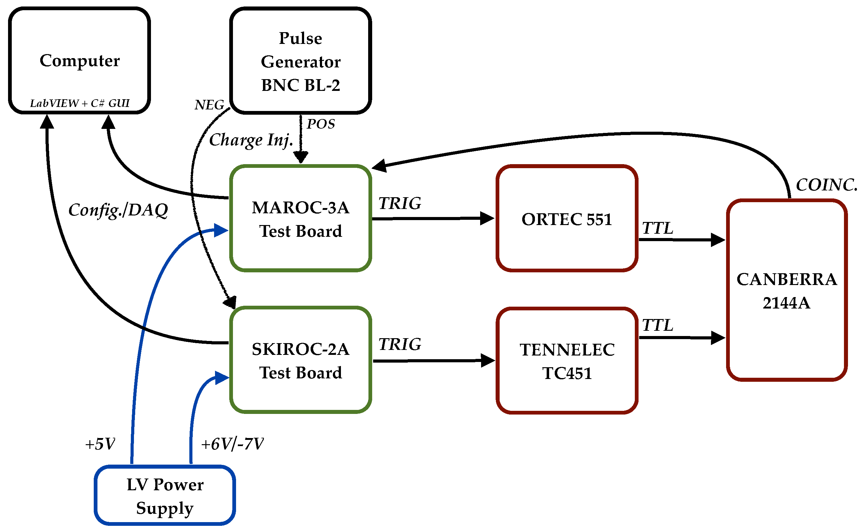 - MAROC-3A ASIC Datasheet v1.1-2. Available online: https://www.weeroc.com/read_out_chips/maroc-3a/ (accessed on 12 July 2025).